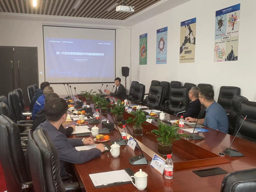 4月10日,晟德公司黨支部書記、董事長劉進(jìn)到訪特變電工承德公司駐地,就強(qiáng)化對(duì)標(biāo)學(xué)習(xí)、深化交流合作,推動(dòng)新能源和儲(chǔ)能系統(tǒng)合作等事宜,與特變電工西安電氣科技有限公司儲(chǔ)能產(chǎn)品線總經(jīng)理趙亮亮,新疆新能源股份有限公司系統(tǒng)集成事業(yè)部冀北區(qū)域總經(jīng)理馬剛、華中公司副總經(jīng)理劉二明進(jìn)行交流座談。座談會(huì)上,雙方首先簡要介紹了公司基本情況,特變電工就組串式液冷儲(chǔ)能系統(tǒng)進(jìn)行了詳細(xì)解讀。隨后,與會(huì)人員分別就如何瞄準(zhǔn)自身發(fā)展需